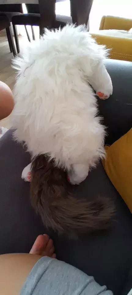 I really love it — it’s an amazing cat plush toy. It arrived in perfect condition and everything was great. When I read the reviews, I noticed no one mentioned that its mouth opens when you cut the strings. You can even feed it dry food, and it hardly sheds at all, just like a real cat. Our kids absolutely love it!