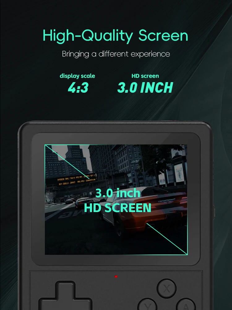 Este console de jogos portátil tem mais de 6.000 jogos clássicos selecionados, tela HD 3.0, tela suave de alta definição com joystick de alta precisão, suporte para baixar e colecionar jogos, suporte para 7 tipos de emuladores, cobrindo uma ampla gama de jogos.