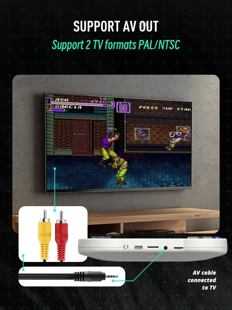 • Suporte a saída AV: conecte o console a um dispositivo de saída AV para aproveitar seus jogos em uma tela maior.