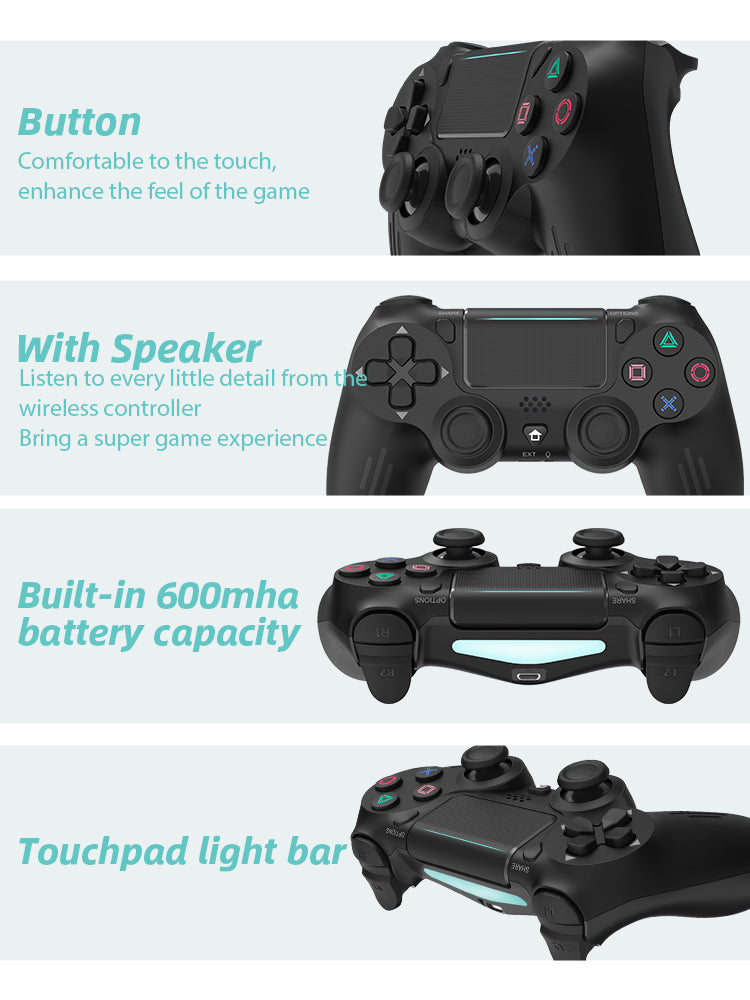 En son 6 eksenli hareket sensörü ve titreşim teknolojisine sahip, PS4/Slim/Pro konsollarıyla uyumlu olarak özel olarak tasarlanmış olup düşük hassasiyet, tuş ve joystick gecikmeleri ve kararsız Bluetooth gibi sorunları gidermek için müşteri geri bildirimlerine göre iyileştirilmiş ve yükseltilmiştir. uyumlu bağlantılar.